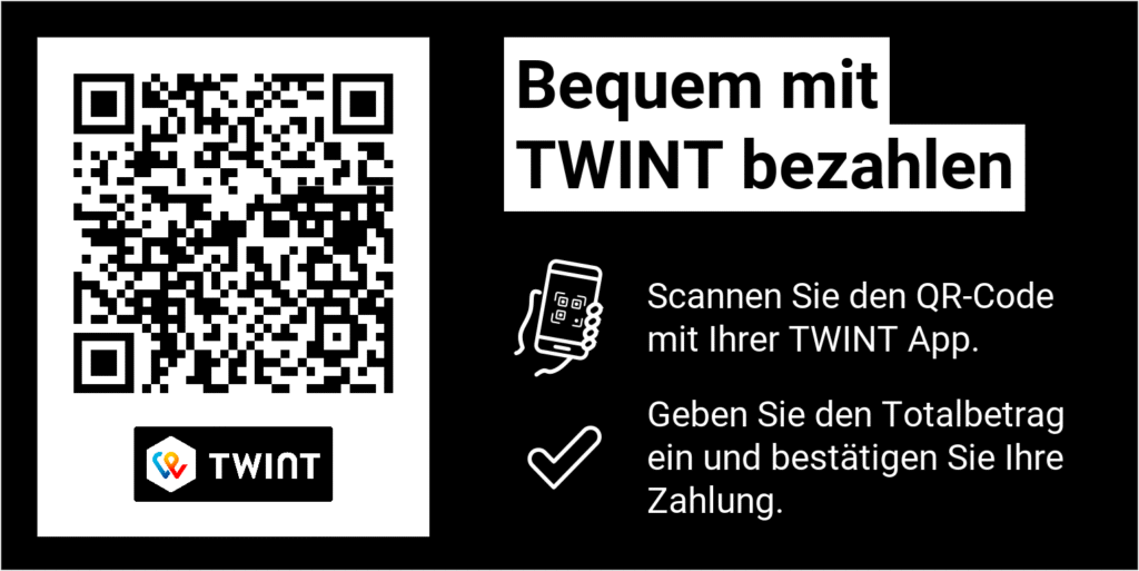 bei Ticket- oder Merchzahlungen über Twint, bitten wir dich dem Sekretariat den Transaktionscode zu zuschicken, damit die Buchung deiner Bestellung zugeordnet werden kann.